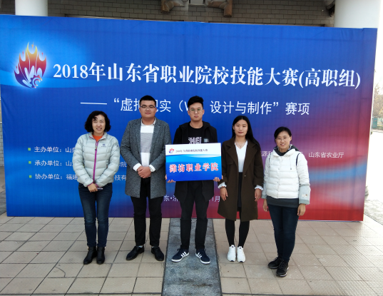 11月14日,2018年山东省职业院校技能大赛(高职组)“虚拟现实(VR)设计与制作”赛项在山东电子职业技术学院举办,来自全省高职院校的35支代表队参加了本次比赛。太阳成集团tyc33455cc员工赵术涵、李浩、崔宁组成的参赛队,经过4个小时的激烈角逐,最终以优异的成绩获得一等奖,指导教师朱丽兰、刘萍荣获“优秀指导教师”称号。