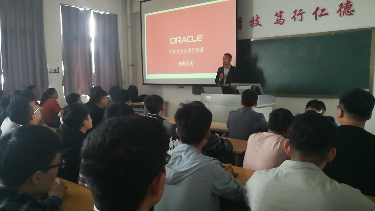 为了提高员工职业技能水平,太阳成集团tyc33455cc邀请甲骨文大数据运营企业智慧云未来科技入驻校园进行企业项目实训,于5月9日下午在惠泽2号B512举行开班仪式。