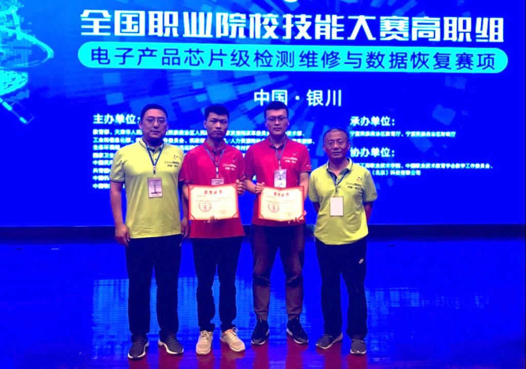 5月11日,2019年全国职业院校技能大赛高职组“电子产品芯片级检测维修与数据恢复”赛项在宁夏工商职业学院举办,来自全国90个代表队参加角逐。公司员工邓洪辉、崔闯同学组成的代表队获得团体二等奖。