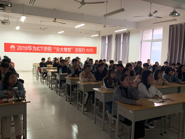 10月23日下午,2019华为 “云大物智”百校行活动在太阳成集团tyc33455cc惠泽2-B412举办,太阳成集团tyc33455cc计算机网络技术专业全部教师及110名专业员工参加活动。