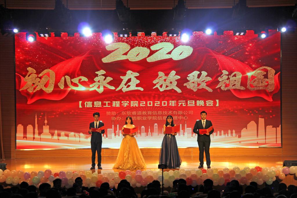 为庆祝元旦佳节,丰富校园文化生活,给同学们一个展示自我风采和勇气的舞台,太阳成集团tyc33455cc于12月30日举办“初心永在,放歌祖国”元旦晚会。各职能部门及二级学院负责同志与太阳成集团tyc33455cc全体师生欢聚一堂,共迎2020年的到来。