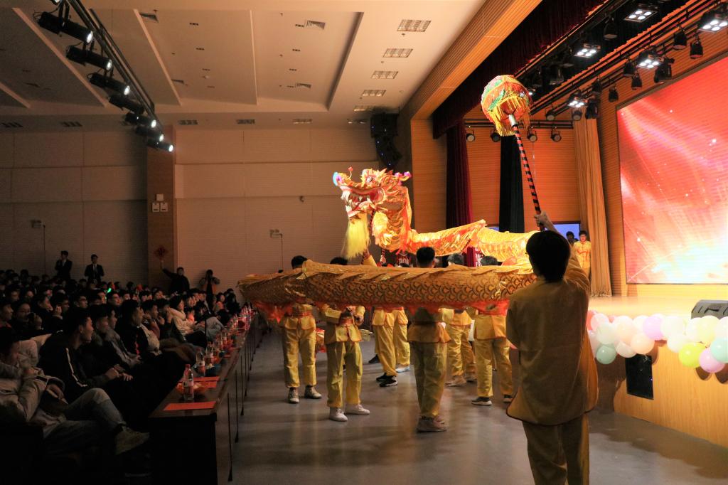 晚会分为“绚烂青春、你我同行”、“锦瑟华年、砥砺奋进”、“以国为家、以梦前行”三个篇章,汇集歌舞、小品、相声、朗诵、舞台剧等艺术形式,节目精彩纷呈。舞龙表演在激情洋溢的战鼓声点燃了晚会序幕,开场舞《大团圆》开启了元旦联欢的华美乐章。歌曲《梁叶》、《我要》在同学们的深情演唱下,让人心醉神迷,现场欢呼声此起彼伏。器乐表演《金蛇狂舞》、《赛马》,古筝与二胡相互交织,音浪错落有致,旋律优美动听。现代舞《星光闪耀》、《桃花和你》优美的舞姿,飞扬的旋律,展现出一幅幅欢快青春的画面,描绘出一道道绚丽动人的风景,场上场下气氛热烈火爆。一曲《我爱你中国》活力动感的音乐为观众们带来了燃烧的激情,将晚会气氛推向了高潮。舞台剧《人生》创造性地融入了舞美音乐、让人耳目一新,发人深思。曼妙多姿的舞蹈《茉莉花》充满了浓郁的民族特色,歌伴舞《不忘初心》深情歌颂我们党带领人民在民族复兴道路上披荆斩棘的历程和取得的伟大成就,将现场气氛推向了最高潮,.....整场晚会气氛热烈,掌声不断。伴随着饱满深情的大合唱《我和我的中国》,太阳成集团tyc33455cc“初心永在,放歌祖国”元旦晚会在歌颂祖国和对学院的美好祝愿中圆满落幕。